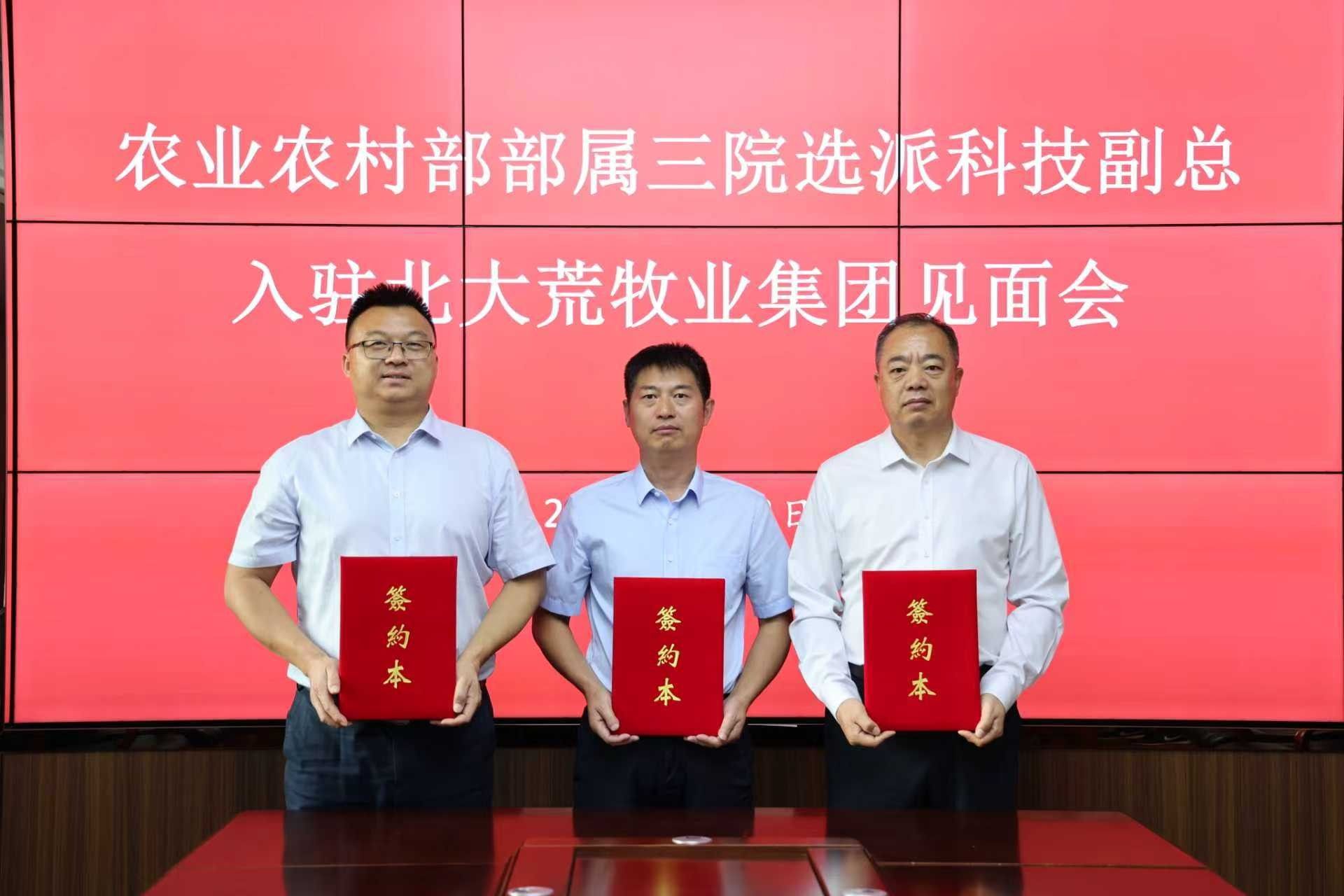 近日,农业农村部部属“三院”选派科技副总入驻北大荒集团工作见面会在哈尔滨召开,黑龙江所覃东立研究员正式出任北大荒牧业集团党委委员、副总经理。黑龙江所党委书记、所长郑先虎,北大荒牧业集团党委书记刘佳明、总经理卫喜明等领导出席见面会。